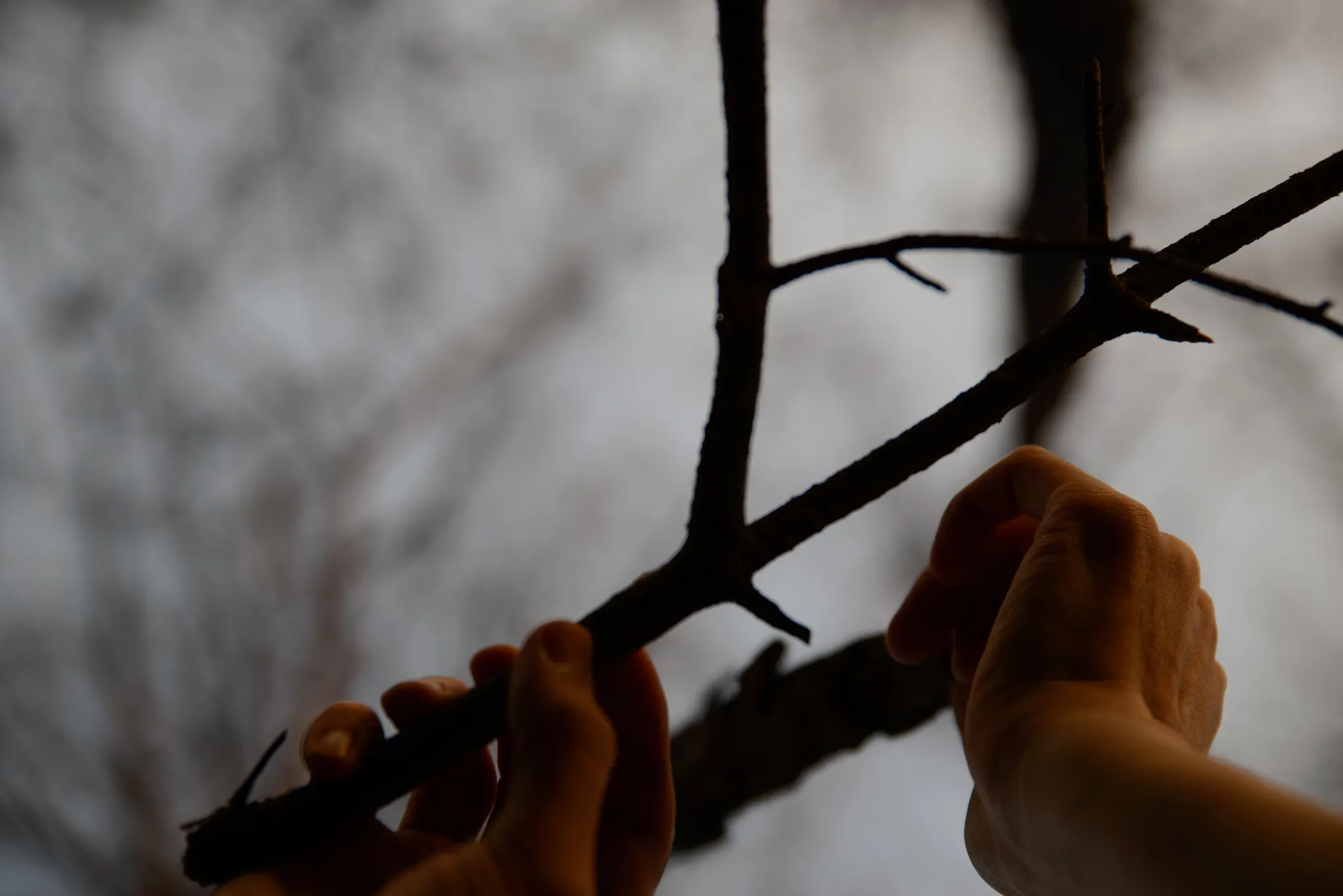 As my journey continued, dawn walks in the woods after meditation became a ritual. I was struck by the way the previous night's frost crystallized the landscape, transforming the quiet mountains into a spiritual space with the sudden atmospheric transition. Each step was a sensory overload, and I felt overwhelmed by the strange absence of life. Yet, this very absence brought forth a vivid memory of what had existed in this place and the intense presence it once held.